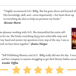 I’m A.G. Billig, author visibility and book launch strategist, brand architect, and founder of Self-Publishing Mastery. I’ve worked with publishers and literary agents, spoken at writers’ conferences across the U.S. and Europe, and helped authors worldwide publish books that reached #1 on Amazon.